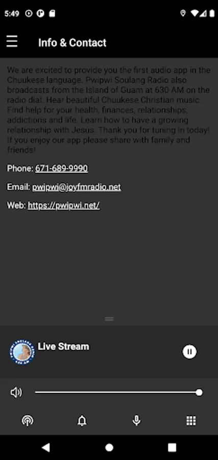 We are excited to provide you the first audio app in the Chuukese language. Pwipwi Soulang Radio also broadcasts from the Island of Guam at 630 AM on the radio dial. Hear beautiful Chuukese Christian music. Find help for your health, finances, relationships, addictions and life. Learn how to have a growing relationship with Jesus. Thank you for tuning in today! If you enjoy our app please share with family and friends!