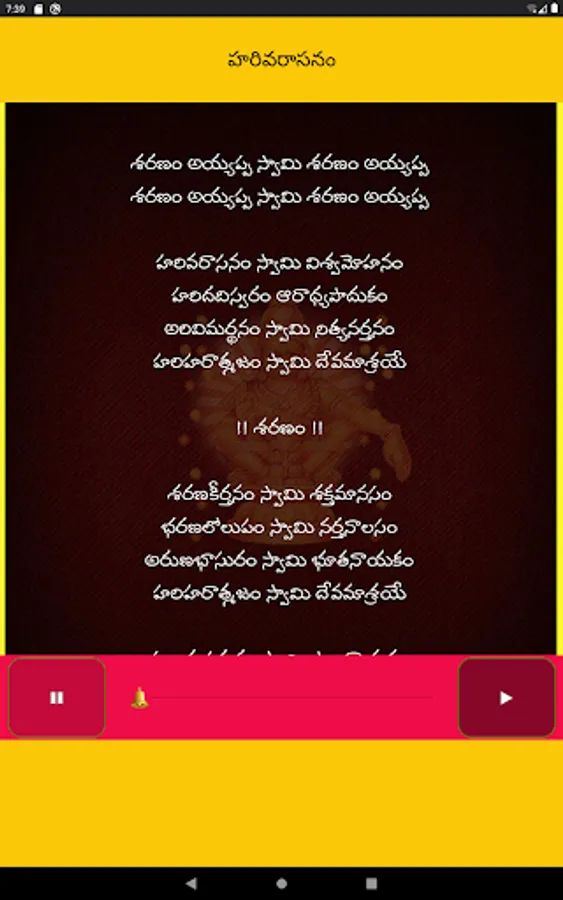 1.Ayyappa Harivarasanam Telugu Lyrics with Audio