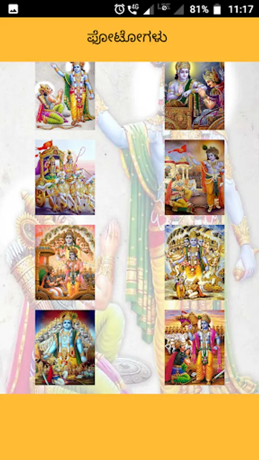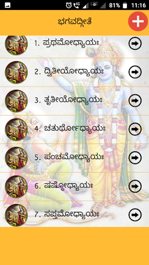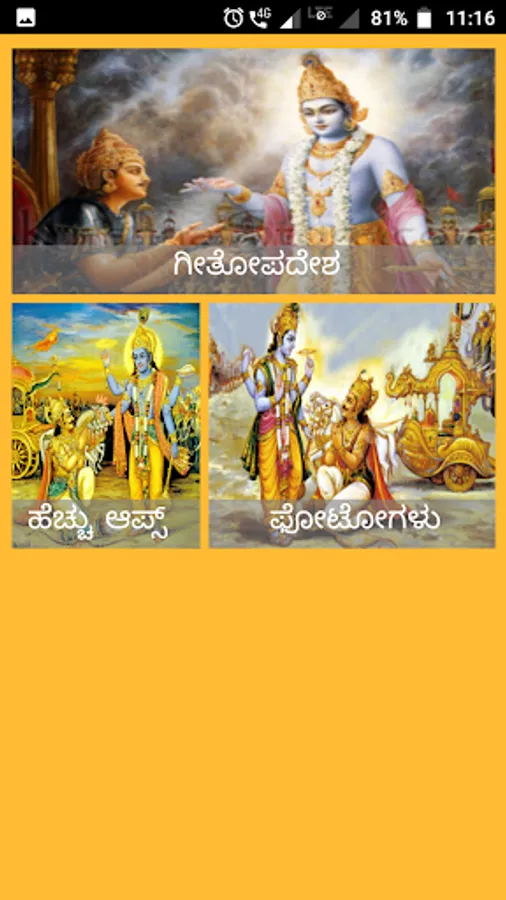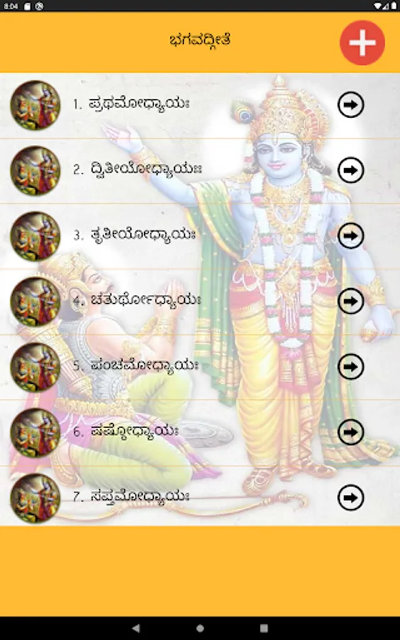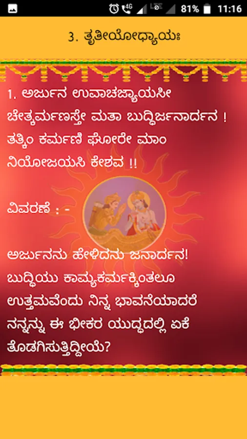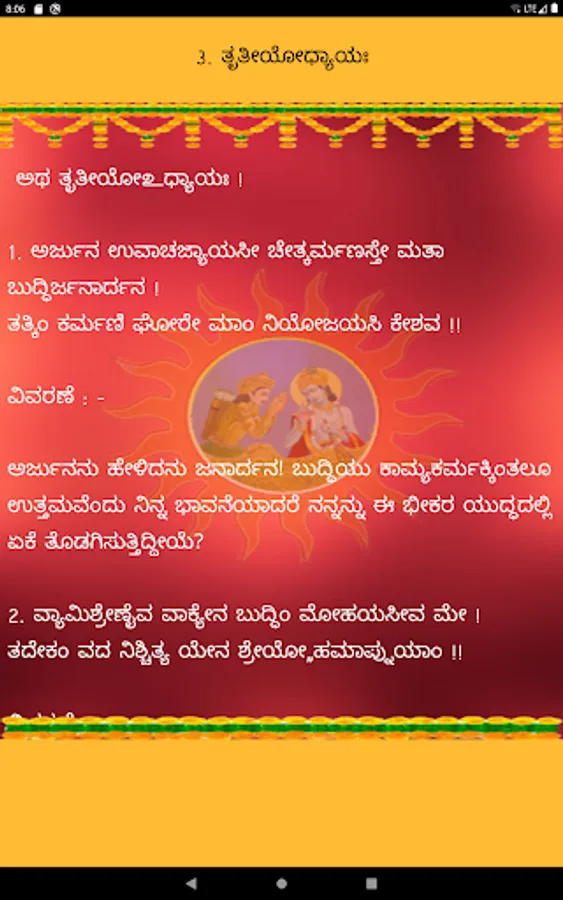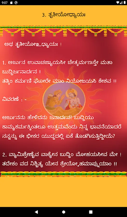 2.App contains collection of all slokas with meaning present in 18 chapters of Bhagavad Gita in Kannada language