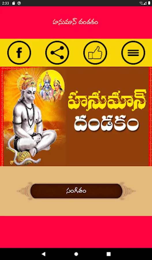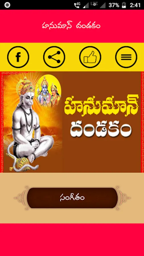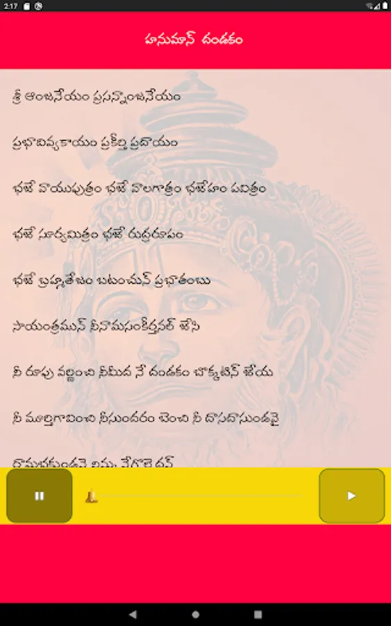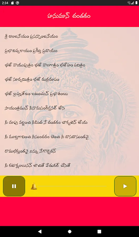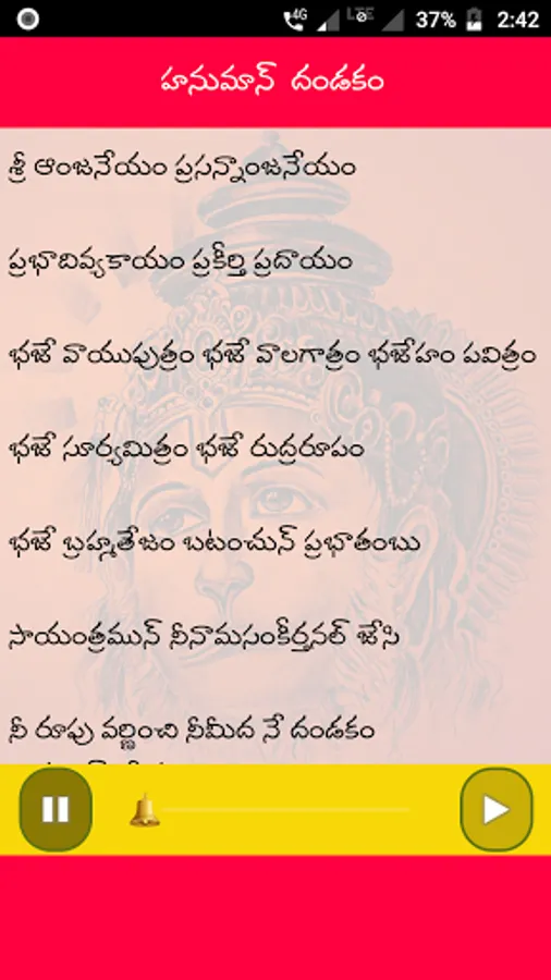 * Hanuman Dandakam Audio contains play, pause options and seekbar.
