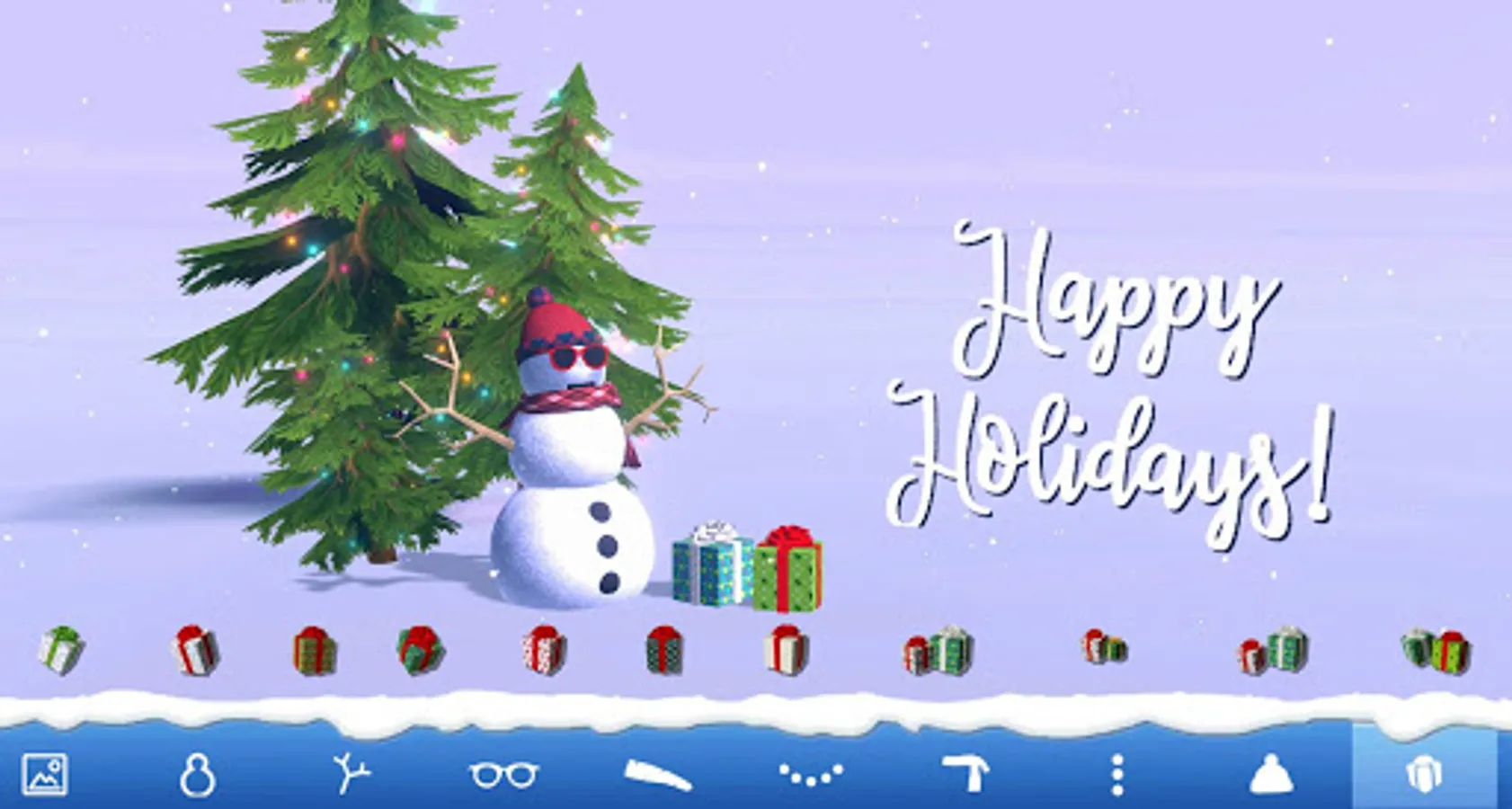 Choose from many items like hats, noses, eye glasses, and gifts and build you snowman the way you like it! Add a sparkly holiday message when you're done and share it to Facebook! It can be you own custom holiday card or message to spread the winter holiday joy!