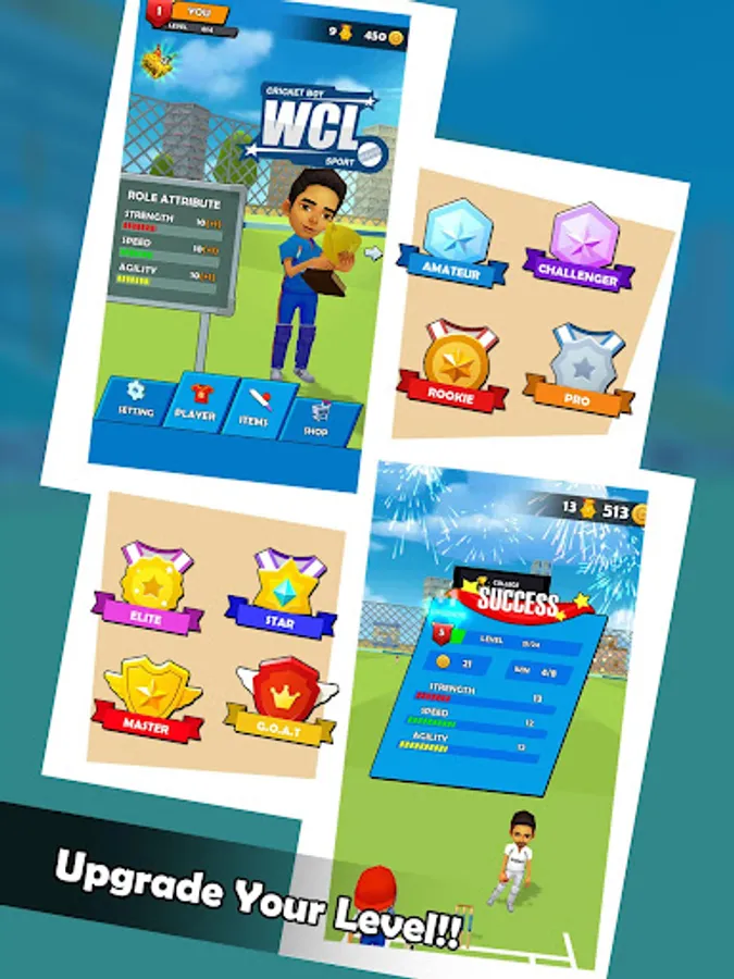 ✔ You will firstly play in lower leagues, then you have to win to upgrade your abilities and play in higher leagues step by step