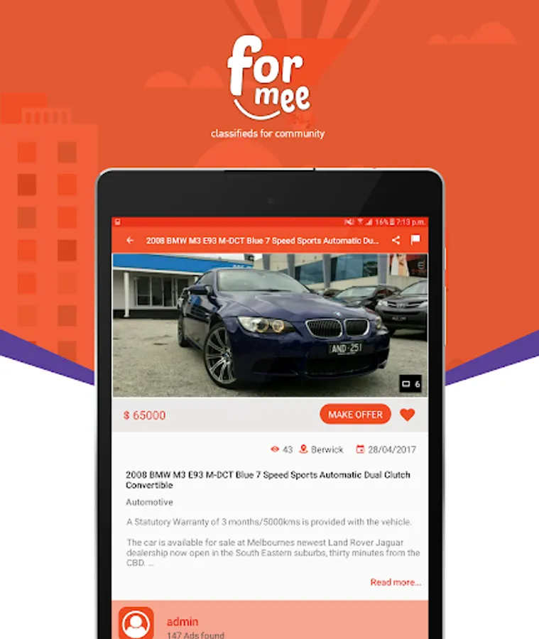 * Share Your Ads On Social Media - Formee help you to easily post & share details with your friends on social media.