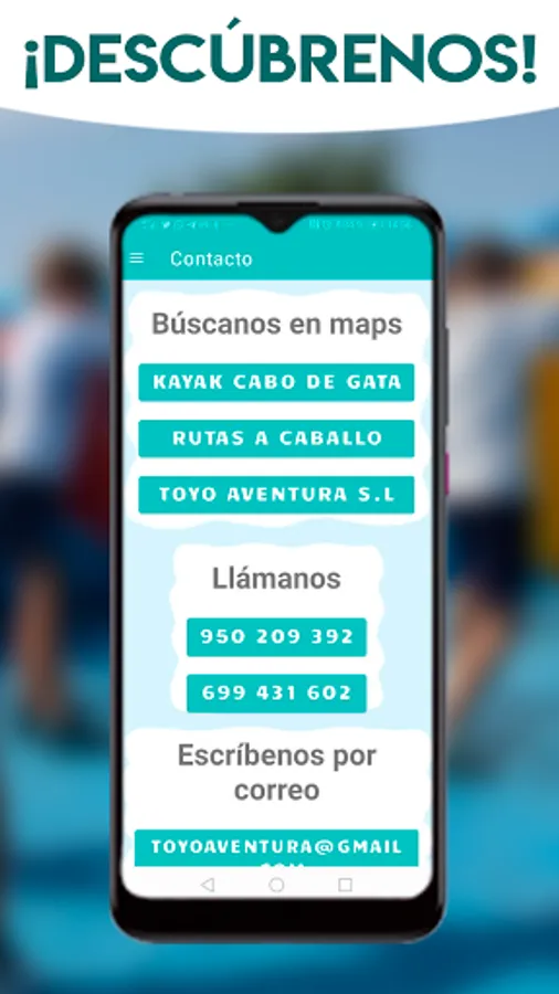 The Toyo Aventura app will allow you to have all the information about our park and services at hand; You can even contact our workers directly through our phone numbers or email.