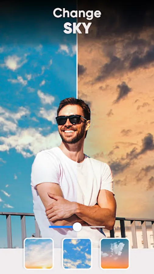 • Use Sky Changer feature and replace sky from your photos to beautiful skies