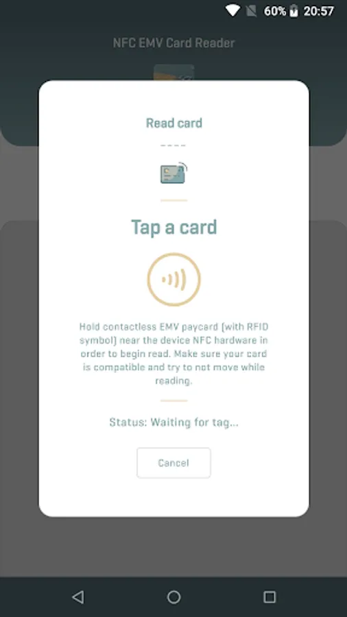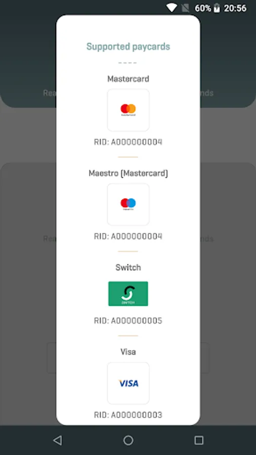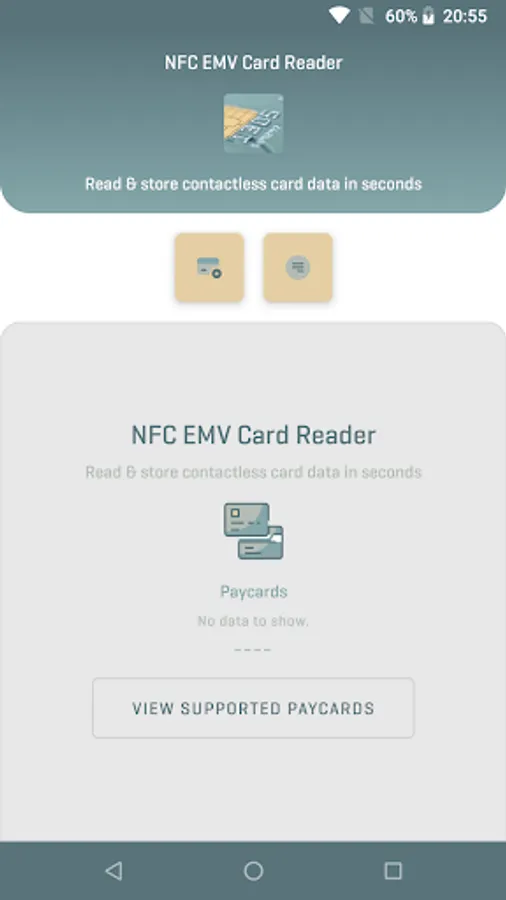 • If you are going to read digital payment card data from another Android device (for example from Google Pay, Android Pay or other digital wallet app), you have to disable Android Beam on both devices before you get started.