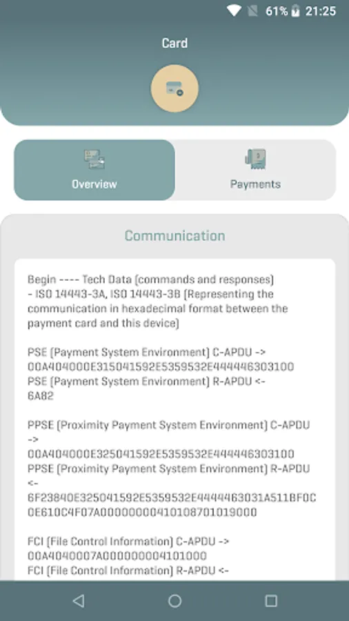 Using this application you will be able to see an example communication between a POS/POP device and the payment card you want to read.