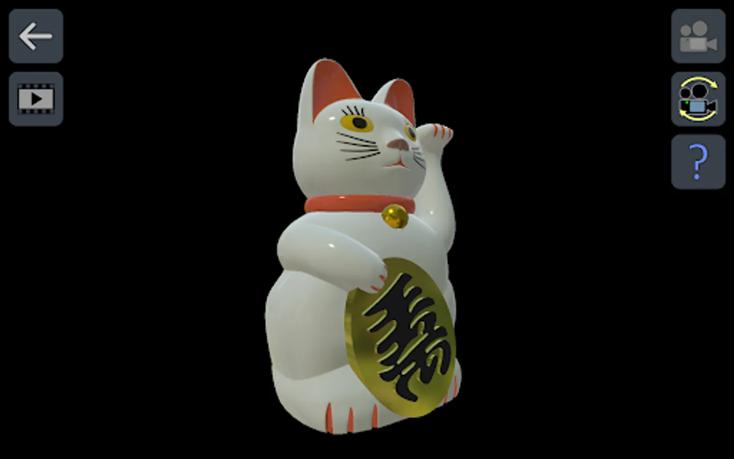 This cute lucky cat waves his paw and spins in place with each touch/swipe gesture.