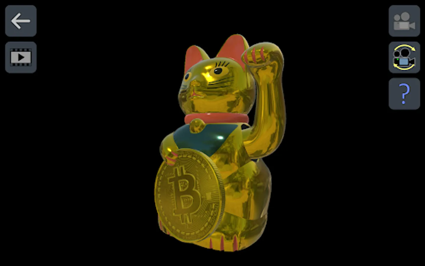 - gold animated waving Lucky Cat ("maneki-neko") holding a Bitcoin ("₿")