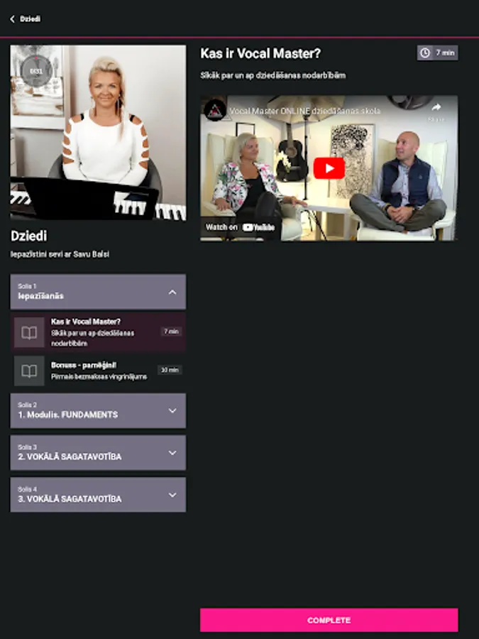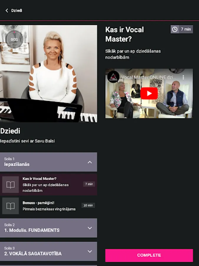Pievienojoties TAGAD, kā DĀVANU saņemsi trīs mēnešu VOCAL MASTER dziedāšanas meistarklašu programmu BEZ MAKSAS.