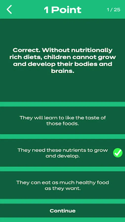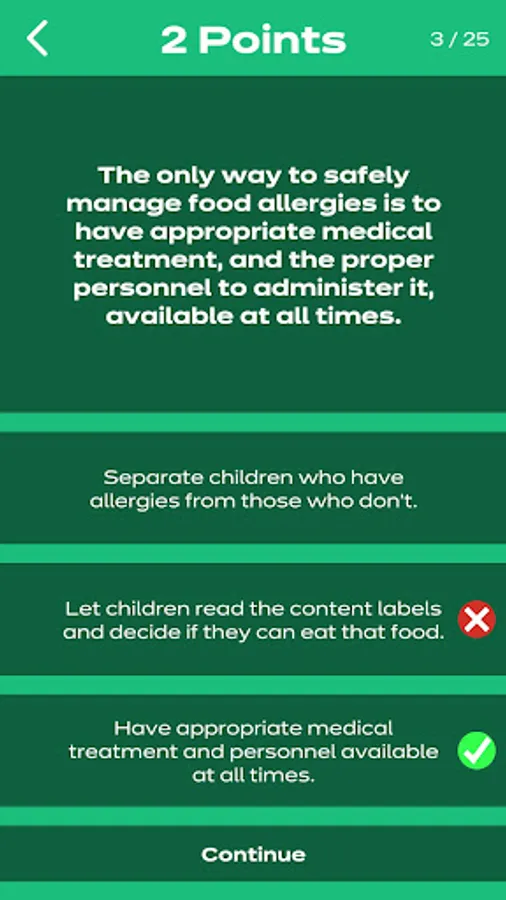 The quiz feature enables you to check knowledge through a series of multiple choice questions; you’ll get feedback and can check your scores for each level.
