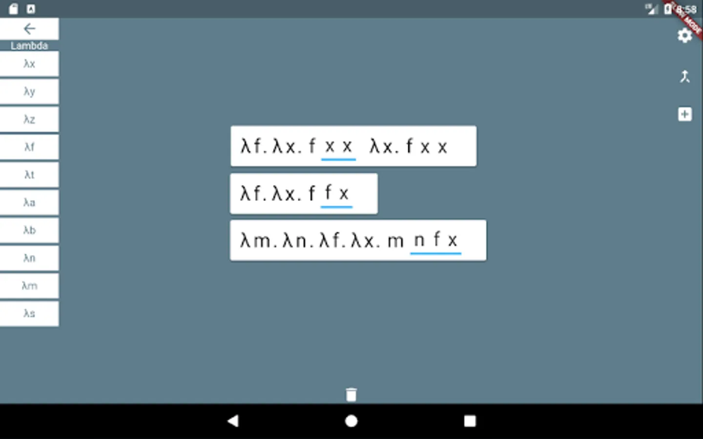 Lambda Sandbox allows you to create lambda calculus expressions by dragging and dropping.