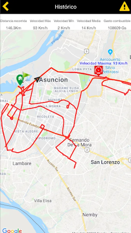 -SUMMARY travel between date range: tracing the route on the map with animation, alerts and positions, distance, fuel consumption, top speed (on the map), minimum and average.