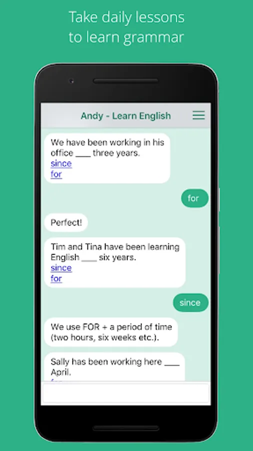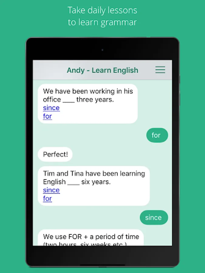 - Take daily lessons: Andy will give you a short grammar explanation and test your understanding