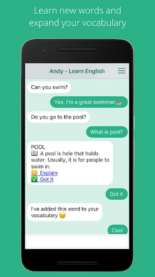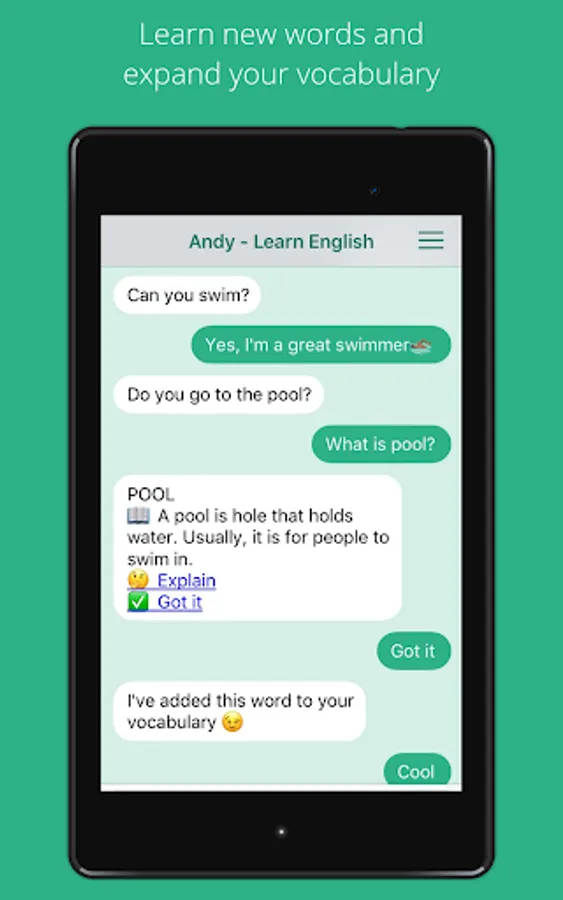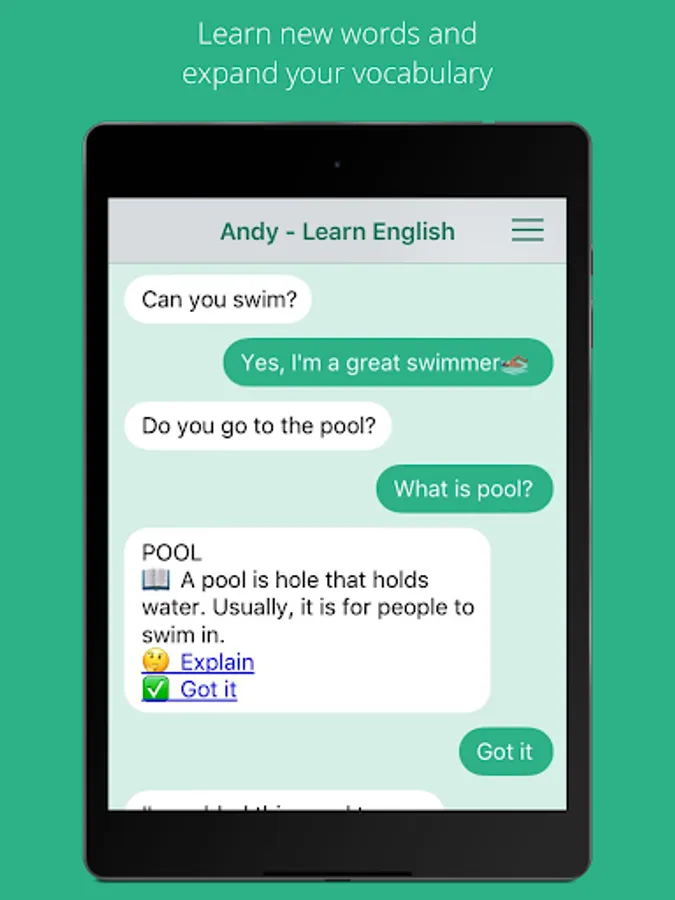 - Andy also corrects some mistakes in your messages when you're just chatting