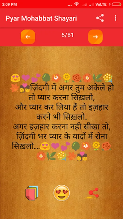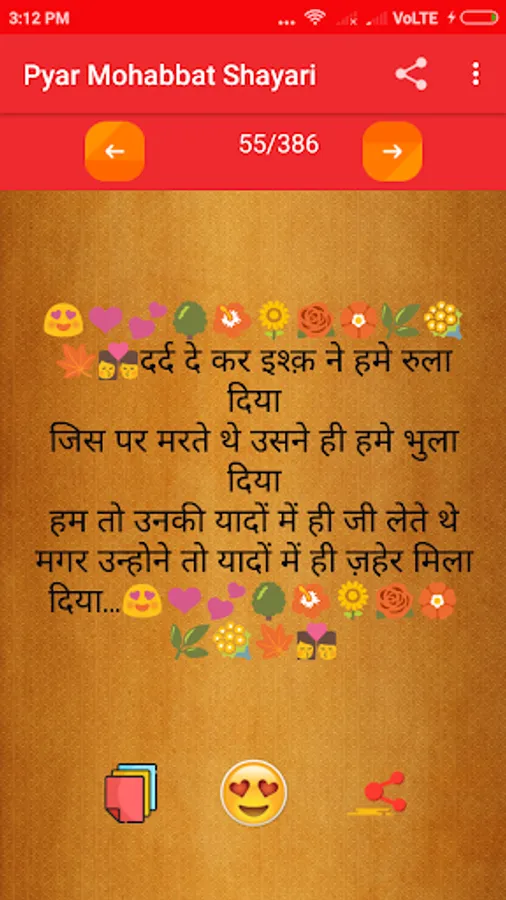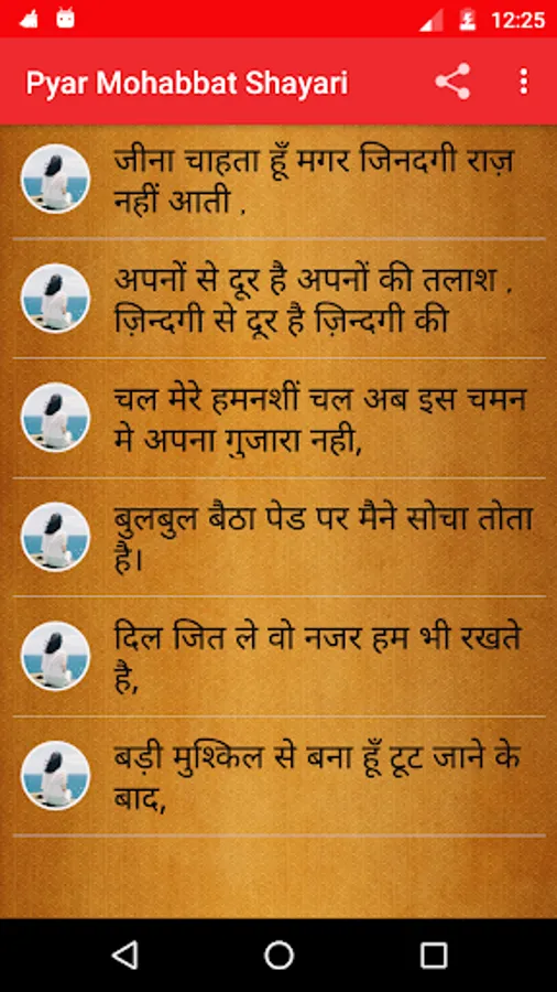 This app contains one of the most popular and creative shayari that will express your emotion for someone else . Once you will have this apps you can read and share easily shayari to anyone using custom and nice user interface