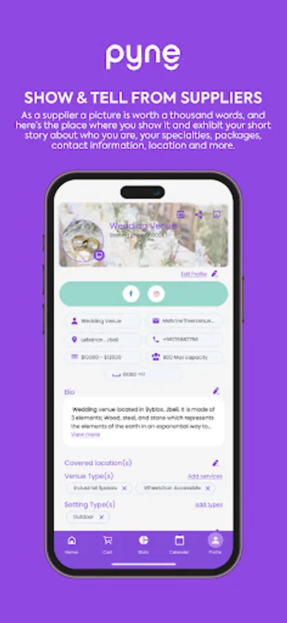 PYNE will guide you through every step, ensuring a worry-free, stress-free, and memorable experience. It customizes your search according to your budget. From finding the wedding planners, to car rentals, photographers, venues, catering, and entertainment in Lebanon - PYNE, has an immense database of clients that fit all your preferences.