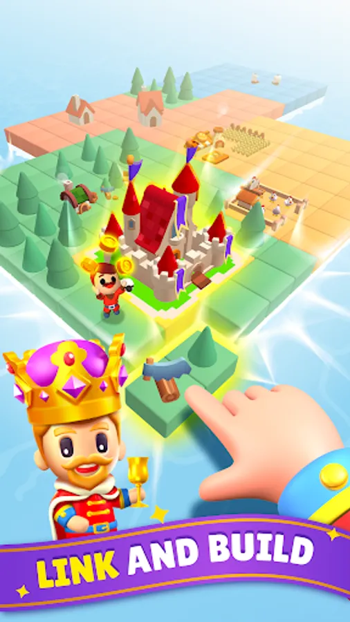 "Hop on your boat and start your journey to be a king with the fresh and fun puzzle game Kingdom Link! Design your dream reign territory by linking various Tiles on the land you discover. Each of them earns you Gold that you can use to make a glorious one! Once you're wealthier enough, you can construct Buildings for more earnings! When things grow busier, let your Managers collect your riches.