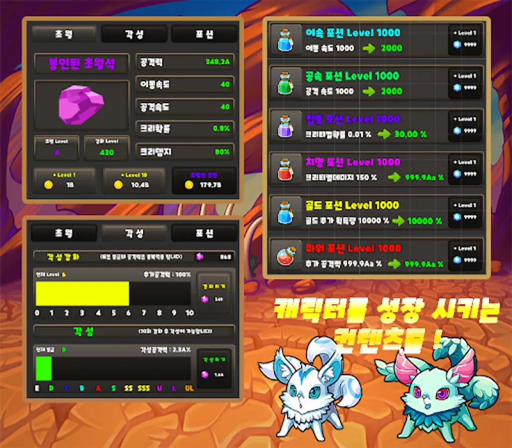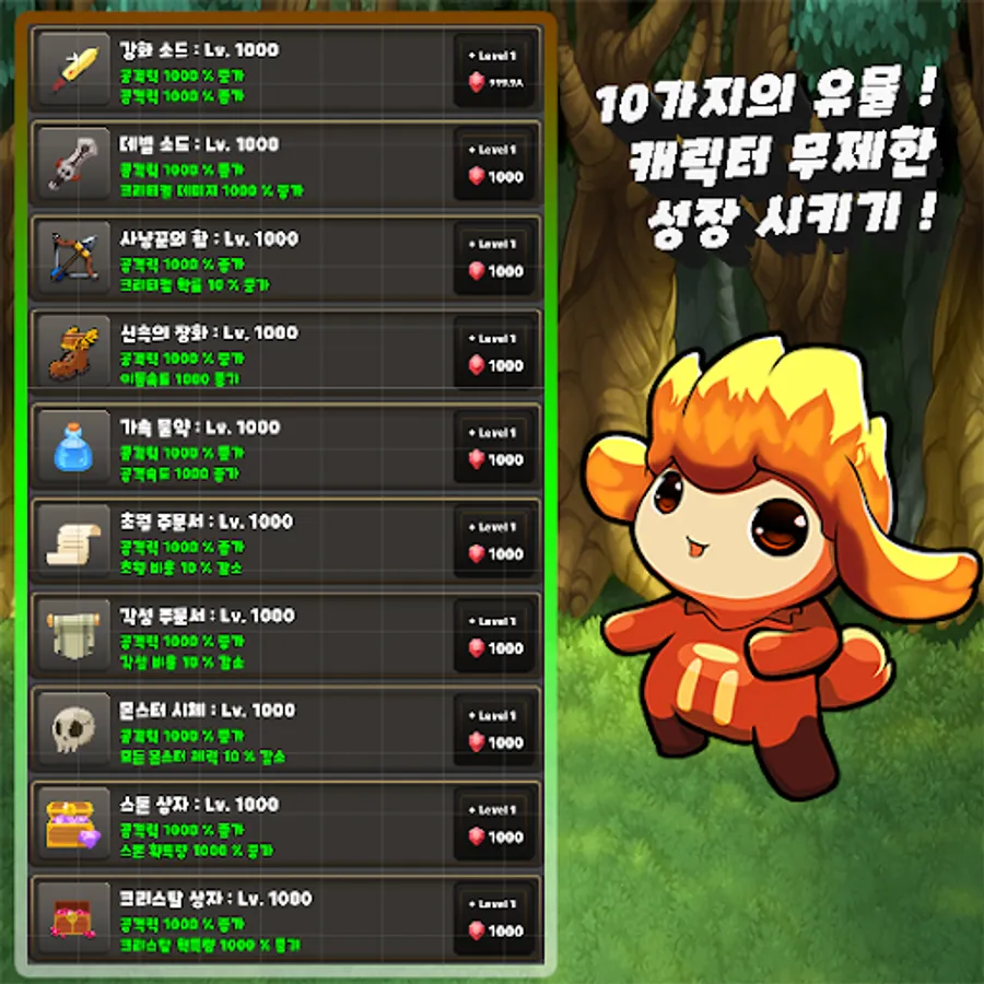 This is a game where you can grow your character by strengthening weapons, shields, helmets, armor, elves, soul stones, and potions with diamonds.