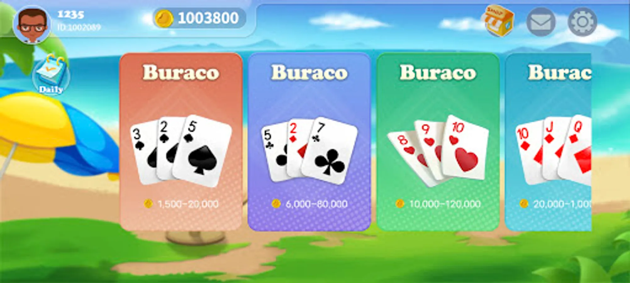 Buraco is a four-player partenrship game related to Canasta, and in some ways similar to Samba, in that the aim is to meld combinations of seven or more cards that can be either sets of equal rank or sequences in a suit. As in several of the newer games of this family each team is dealt an extra hand of cards which is picked up by the first member the team who plays all the cards from their initial hand.