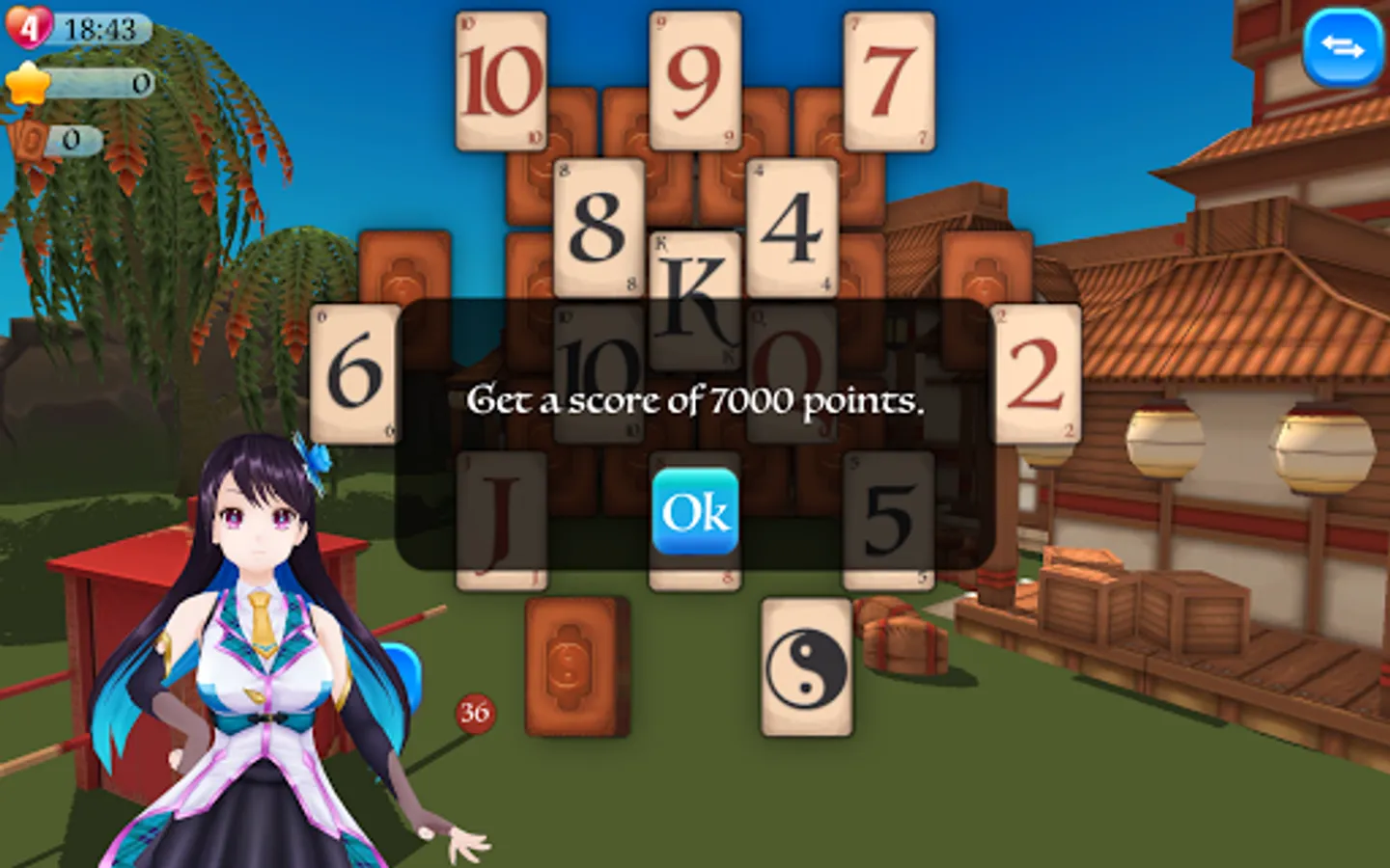 The card game consists in clearing the board by taking a card that is one above or below than the card on the deck.