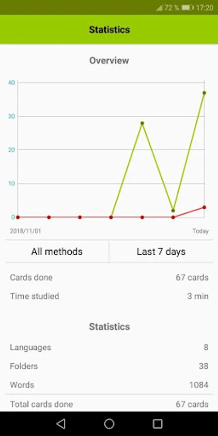 Do you easily forget learning? There is a function Reminder! It reminds you to learn. You can set frequency to every 2 days or also to every 30 days if you want.
