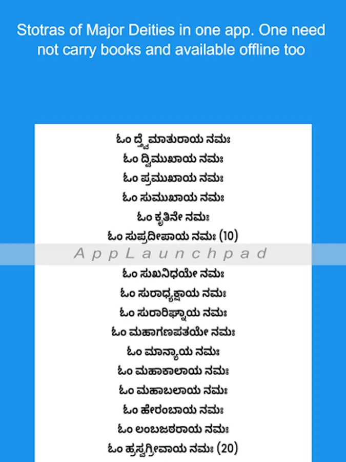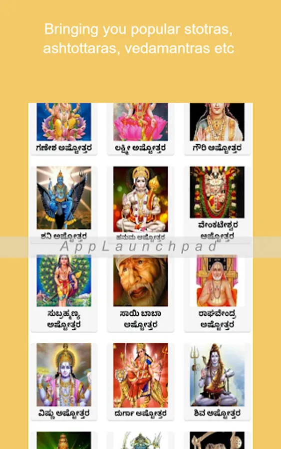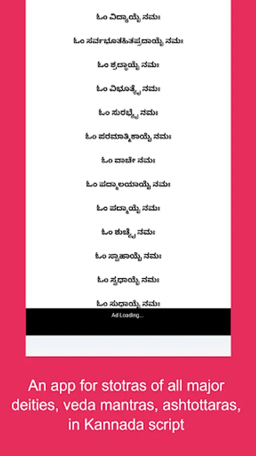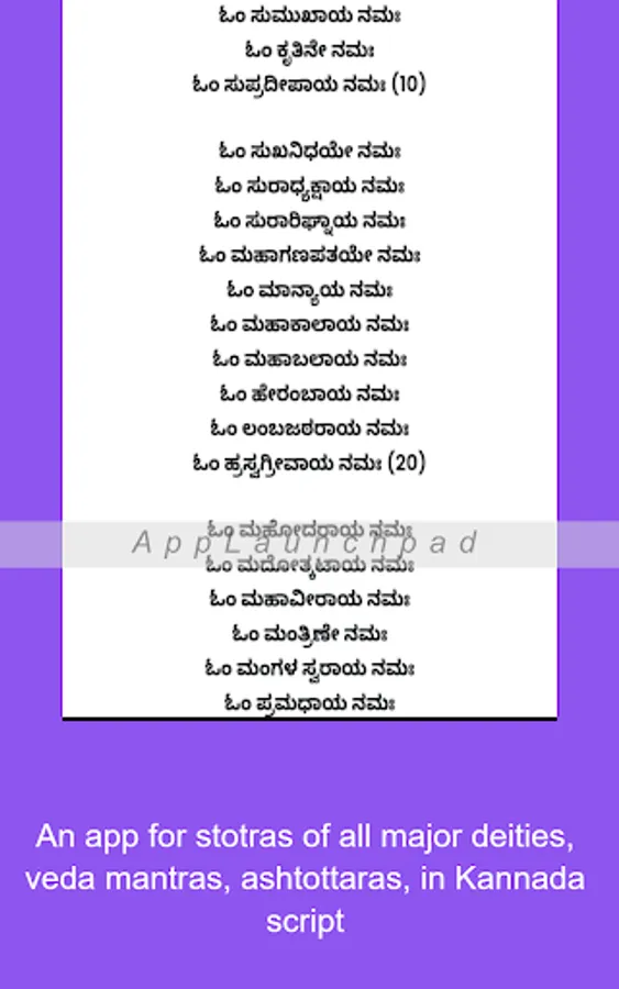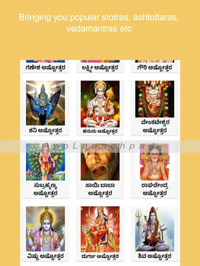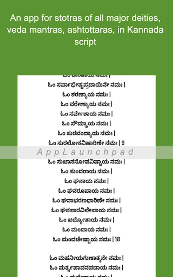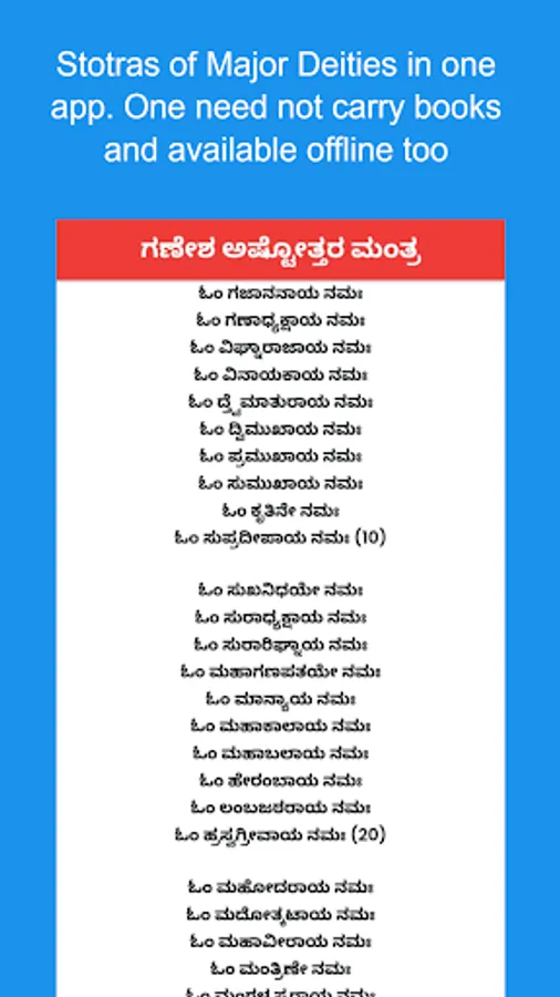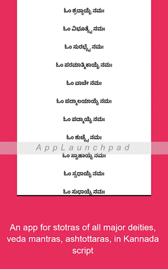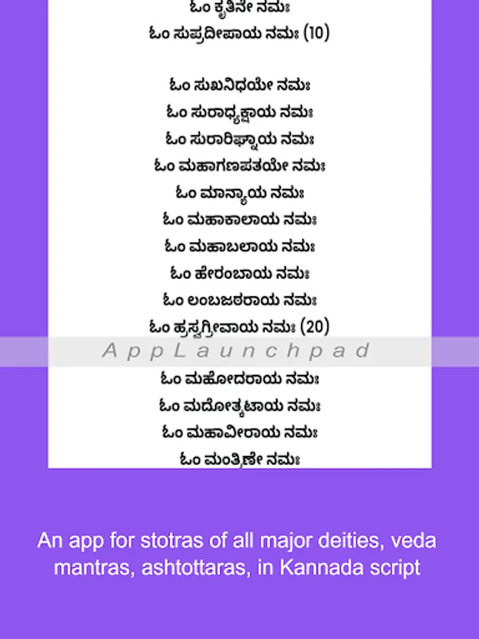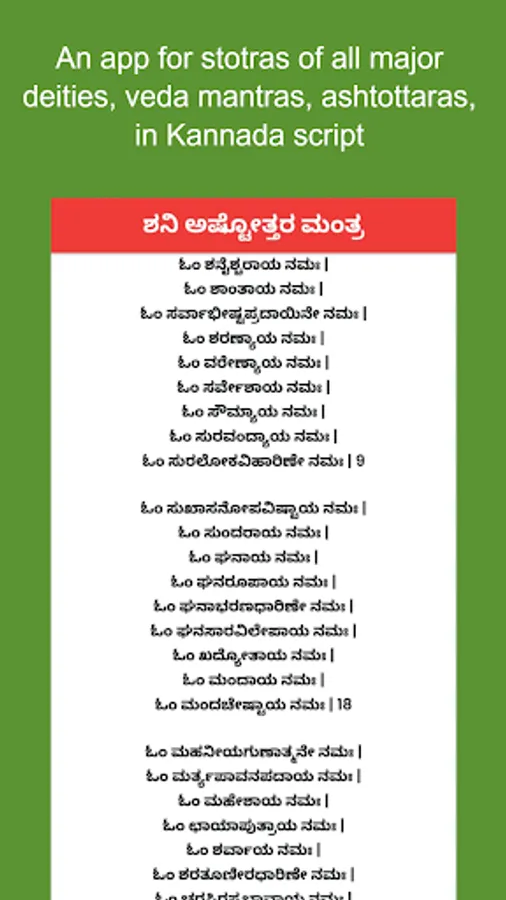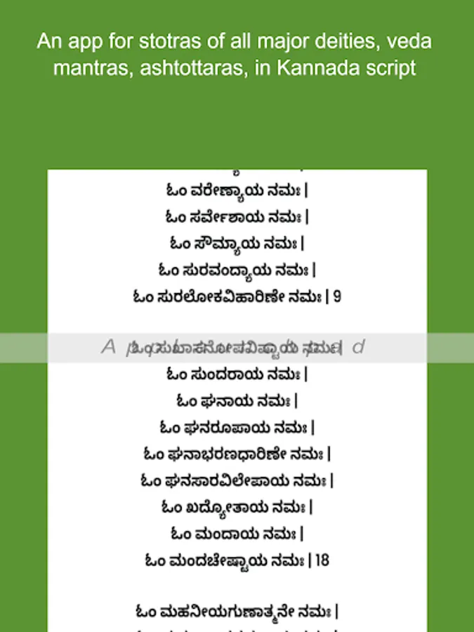 An app for stotras of all major deities, veda mantras, ashtottaras, in Kannada script