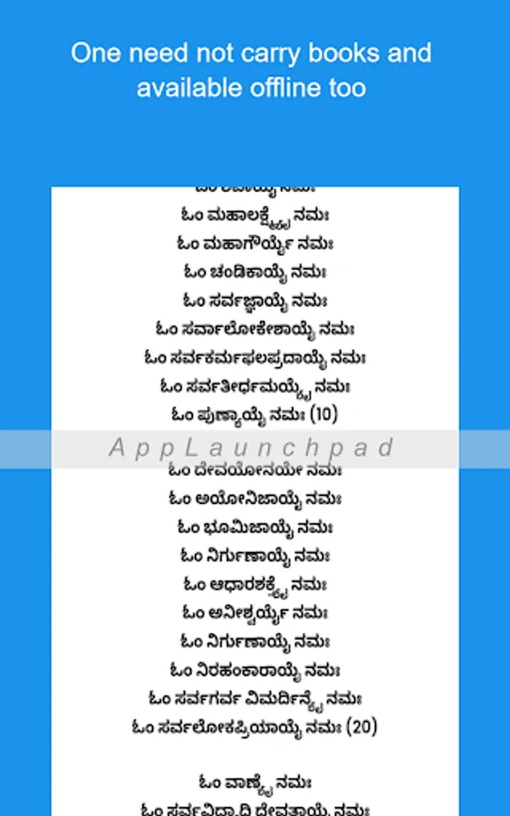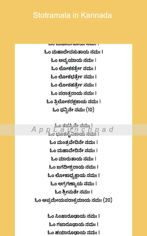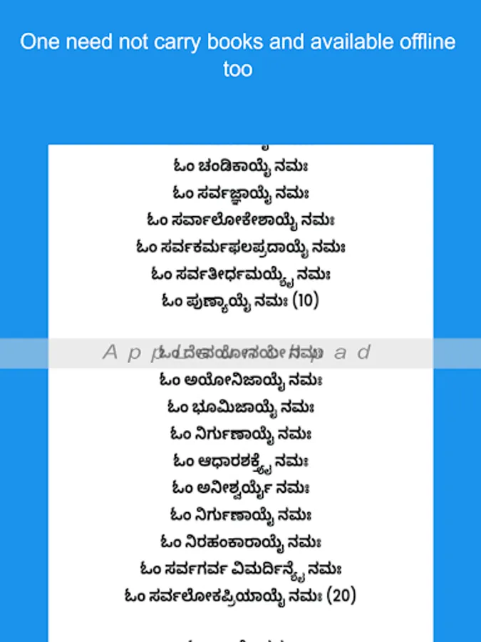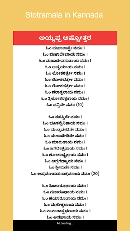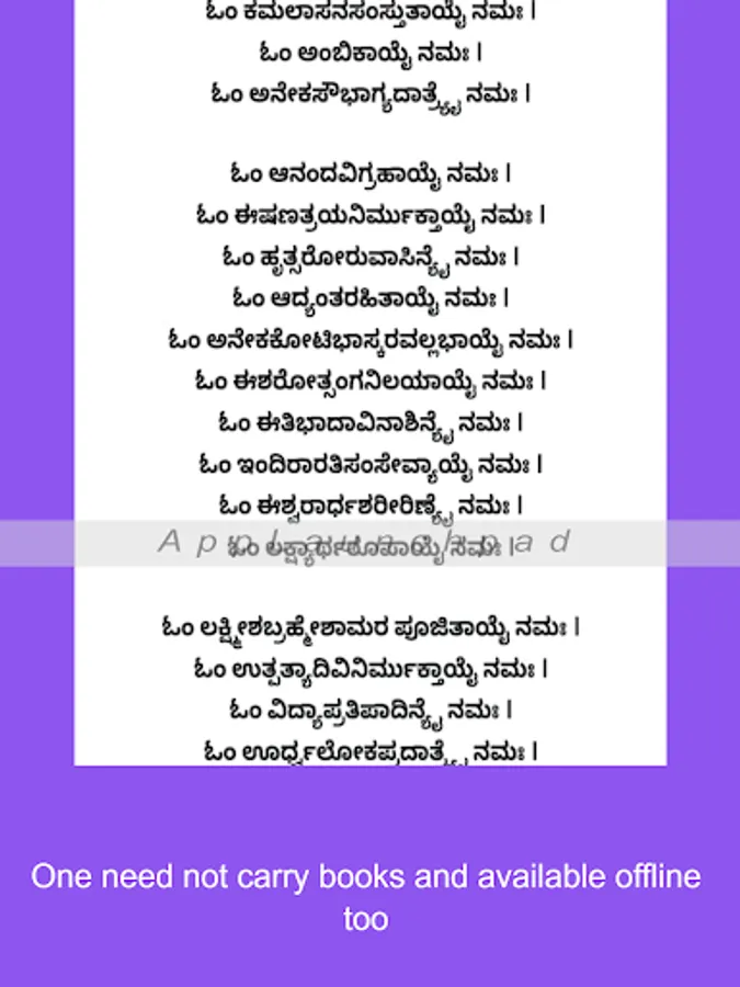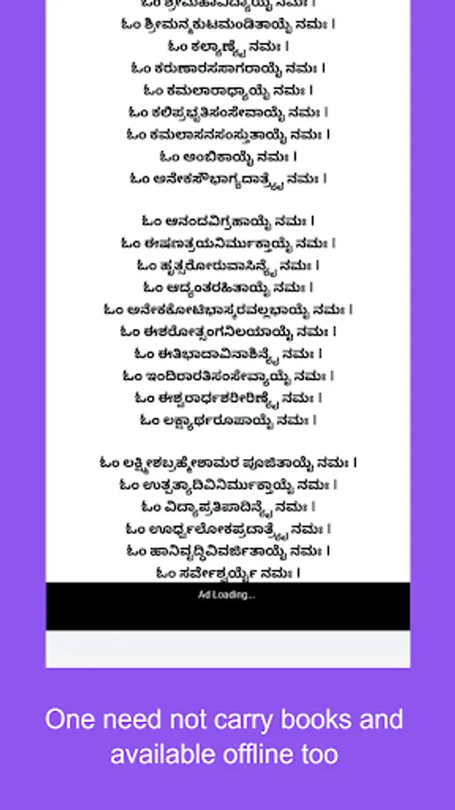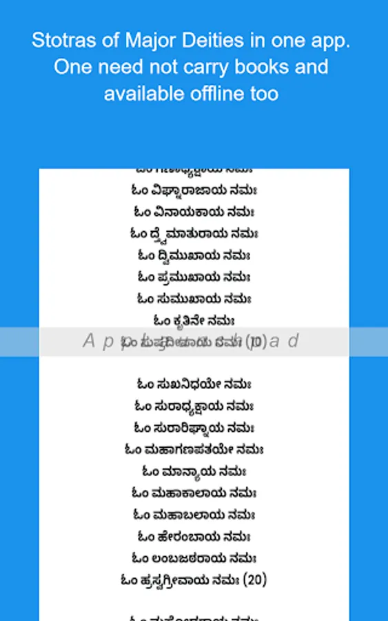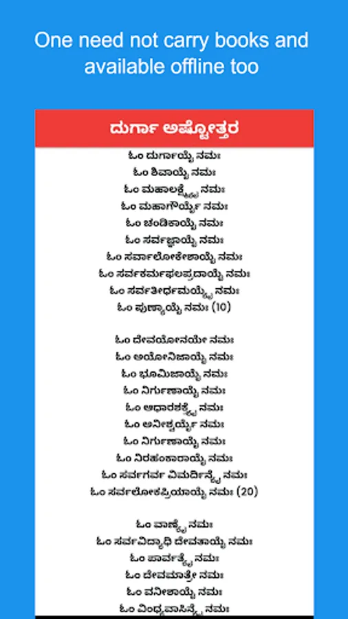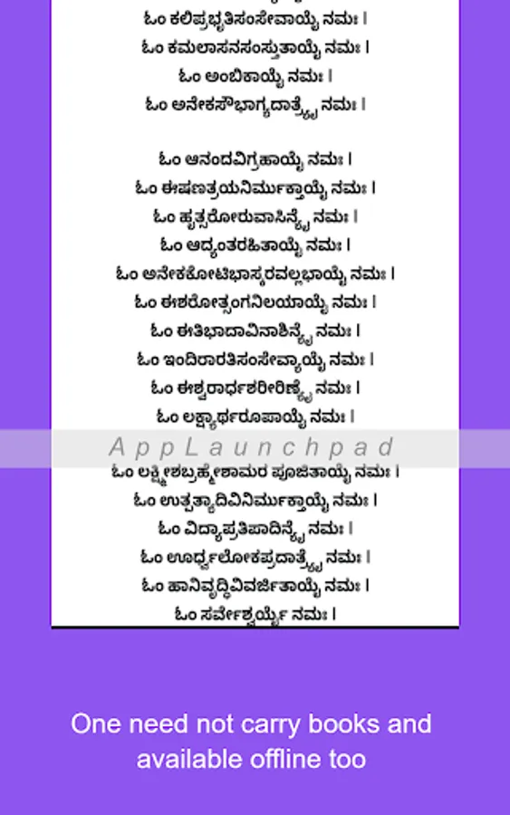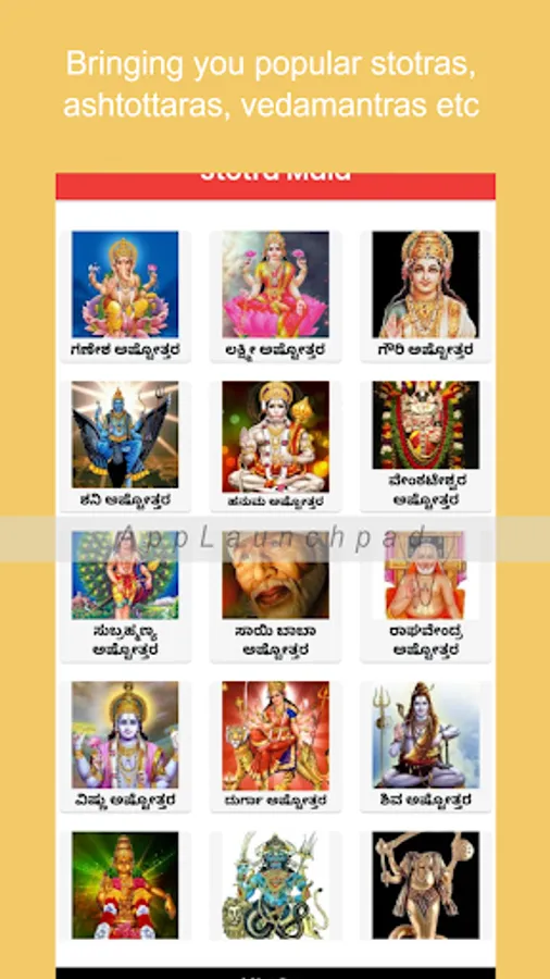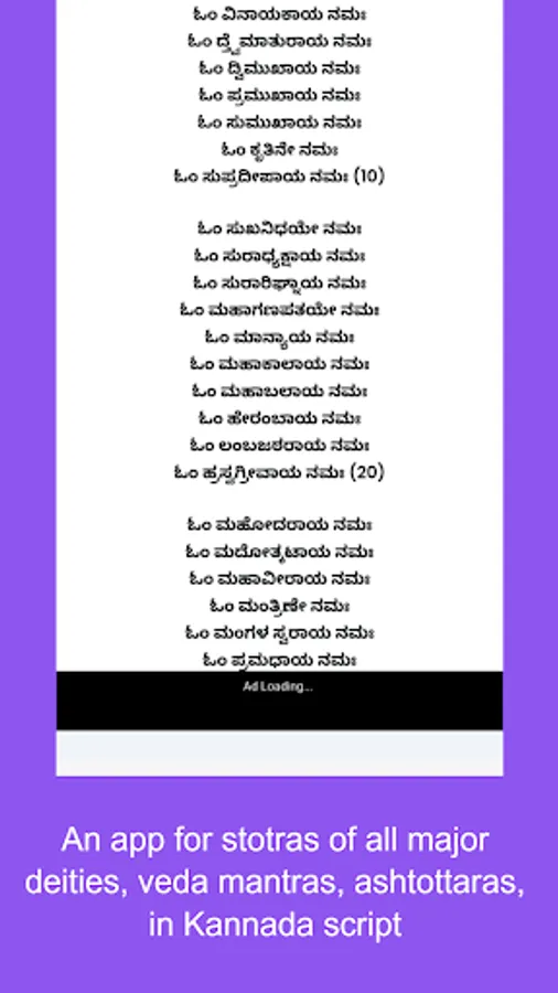 An app for stotras of all major deities, veda mantras, ashtottaras, in Kannada script