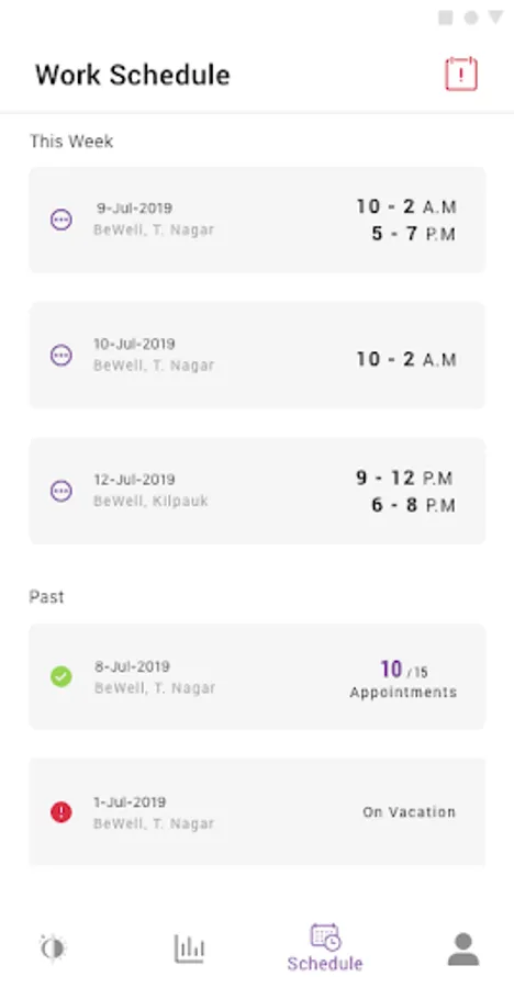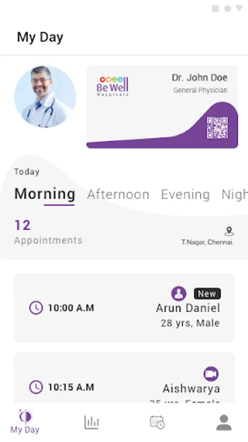 Be Well Doctor's App for managing appointments, work schedule & earnings journal.