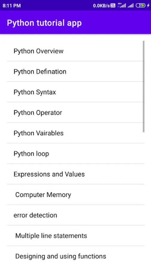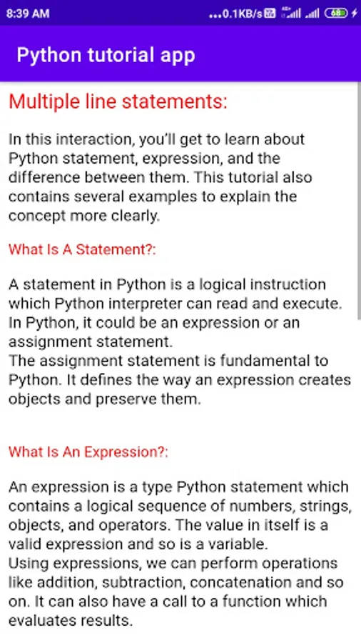 python tutorial app explains lessons and explanations that help you learn python tutorial app. a lot of explanation python programming app.