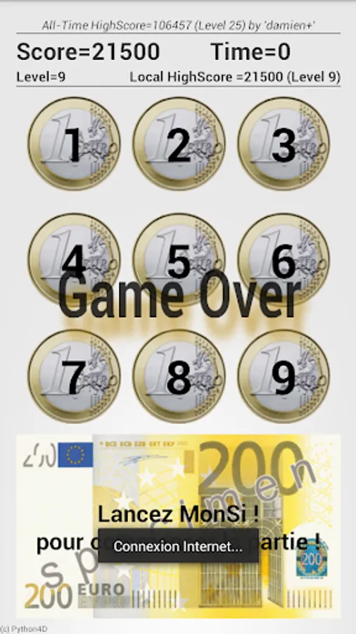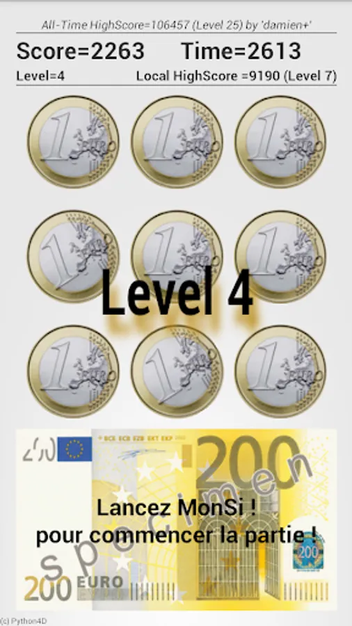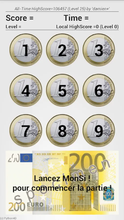 2- Press, in order, on the figures represented by the coins of 1 €.