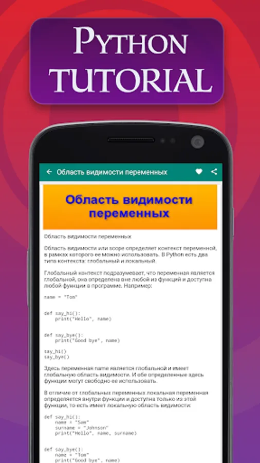 Guide "Python tutorial", will teach the fundamental principles of programming on the example of "tasks and examples." You will acquire the necessary skills for developing applications in Python and learn how to apply them in real practice.