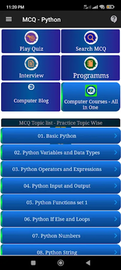 “Learn Python Programming : Python MCQ, Python Quiz, Python Interview, All Python Programs” app provide an environment to learn and prepare Concept of Python Programming from anywhere, at any time and beyond the limits.