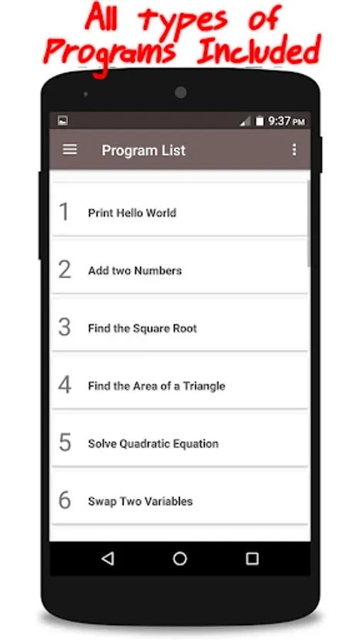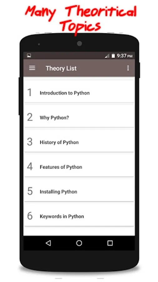 Python Programming an app with all in one feature. Theory topics covered with programs. An contains many theoretical concepts and programs to learn daily.