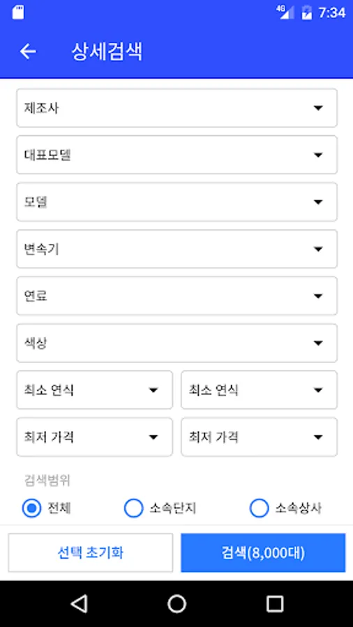 - 상세검색 : 찾고자하는 차량의 세부 항목을 선택하여 검색