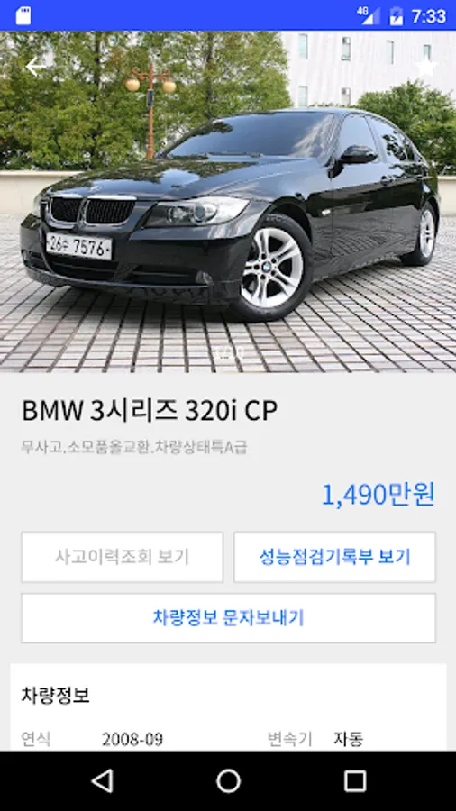 - 차량정보 문자보내기 : 차량정보를 원하는 고객에게 SMS로 전송