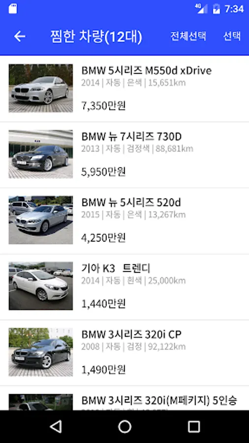 기존 앱에서 차량검색 부분을 통합하고 오늘본차량, 찜한차량 등 기능을 추가했습니다.