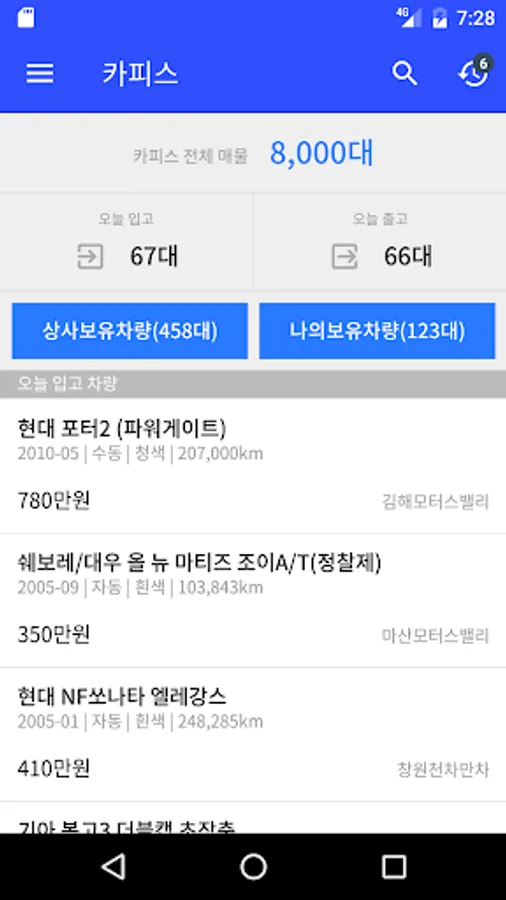 부산, 경남지역 9000여대 중고자동차 정보를 제공하는 중고차 딜러들을 위한 "차량관리프로그램 - 카피스"의 모바일 앱 Ver2입니다.