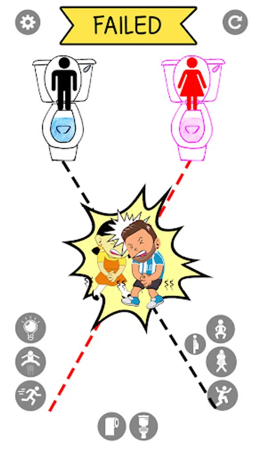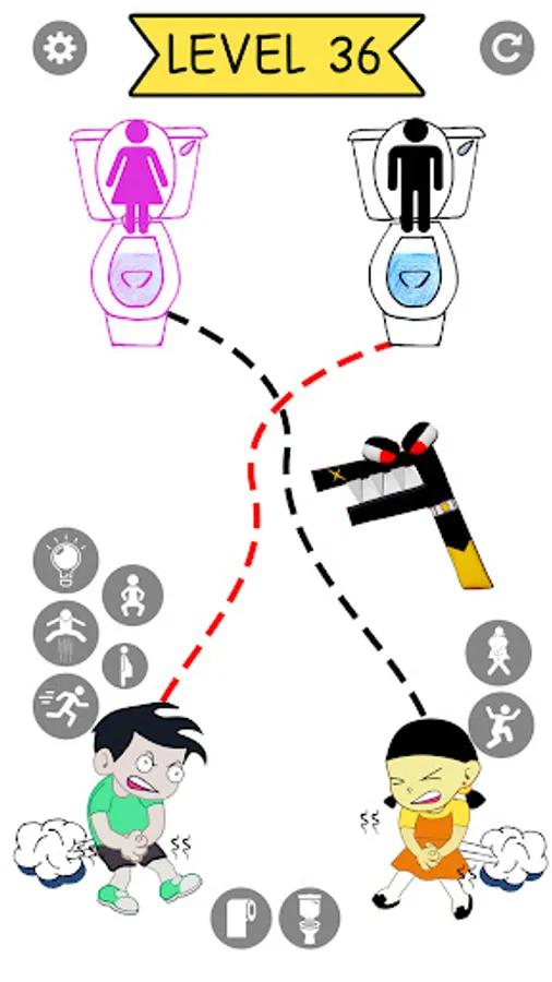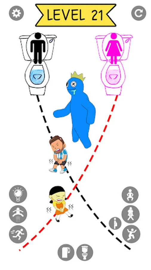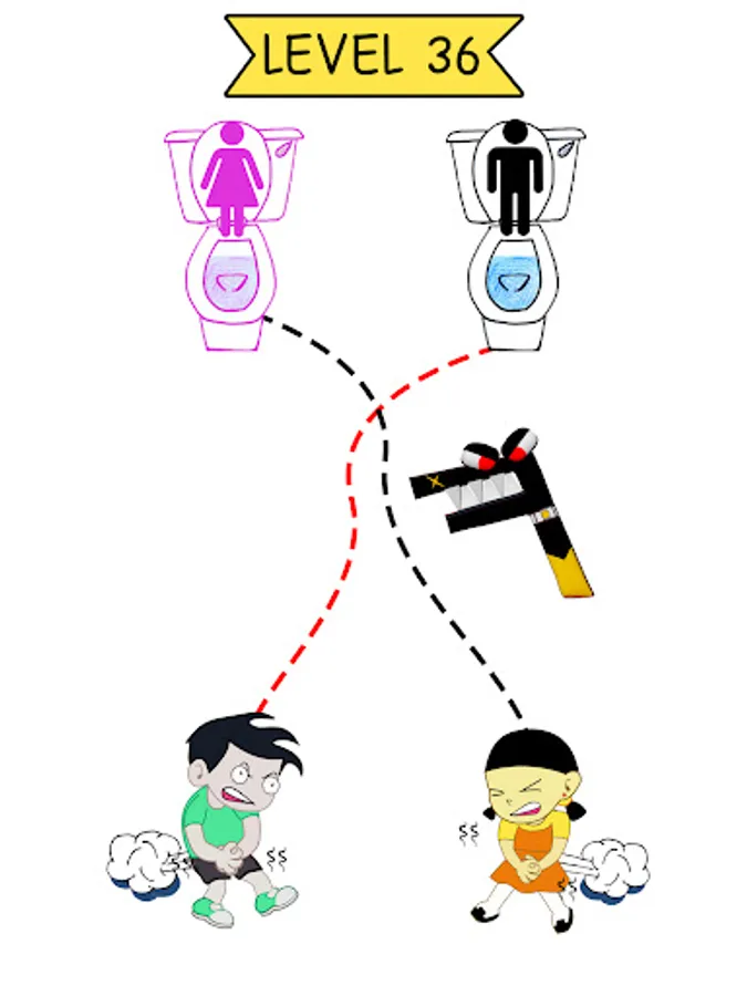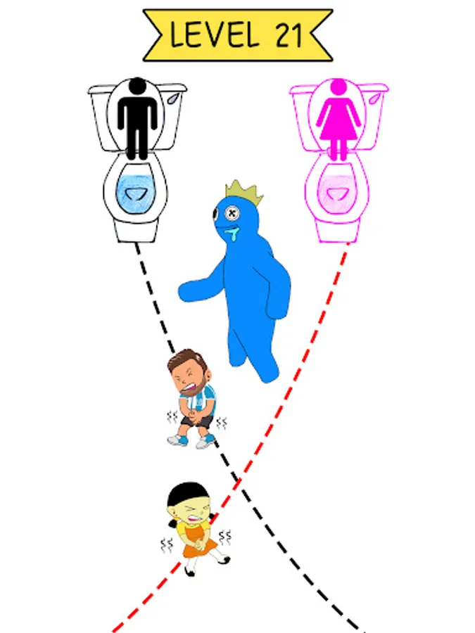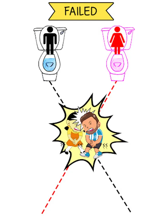 Save the bro rushing to go to the toilet as quickly as possible. Your goal in the toilet draw puzzle is to locate the toilet. Draw a line towards the toilet as soon as possible to save the girl and help them release pressure.