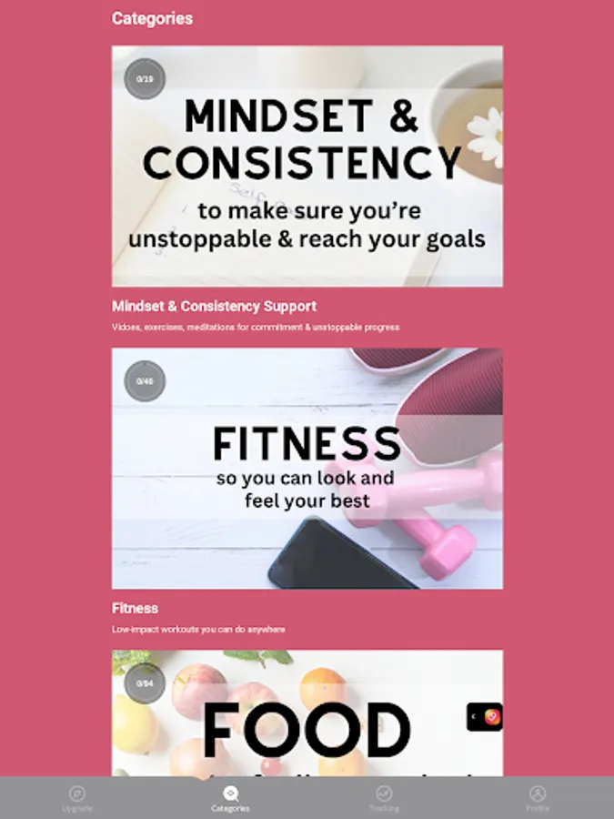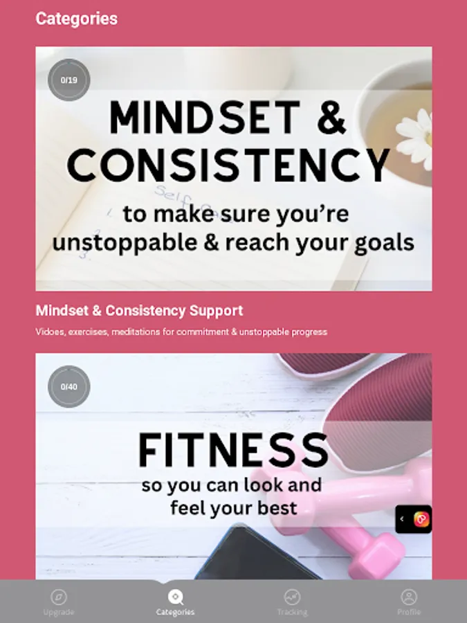 One-stop shop for busy women to live their healthiest lives. Mindset training to stay consistent and create healthy habits that stick, quick home workouts, nutrition tips, and meal prep hacks, delicious recipes, and more. Set your goals, track your progress, and feel unstoppable!