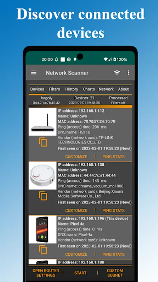 ✔ Easily see the history of the already connected network devices, discover the newly connected network devices.