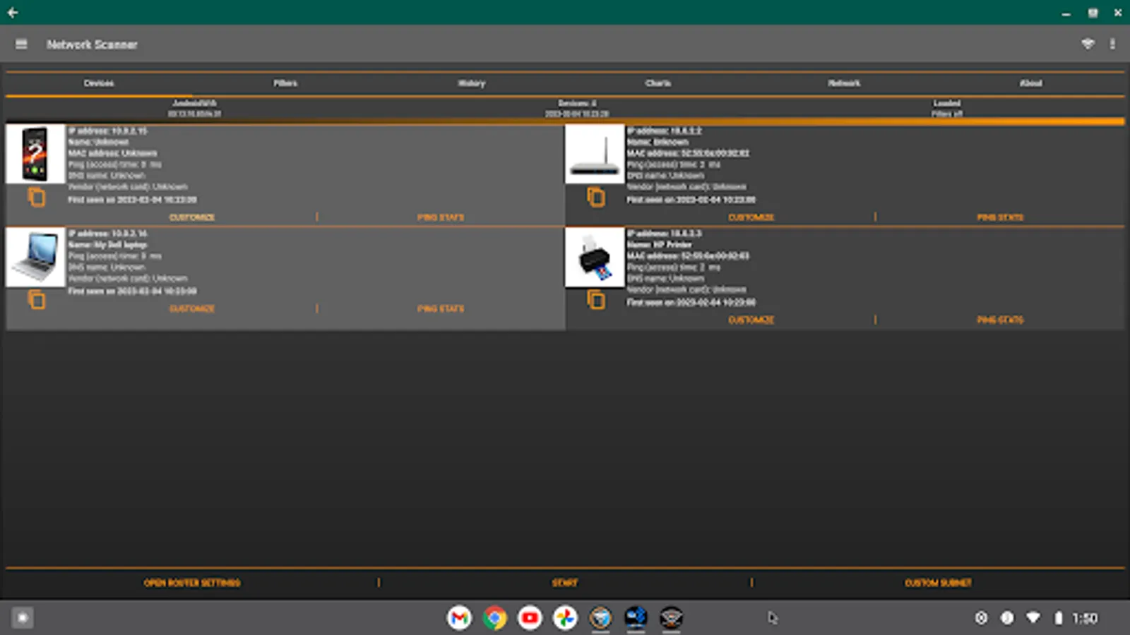 You can easily see all of the available data of the connected devices such as mobile phones, laptops, printers and others.