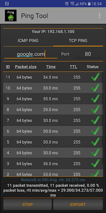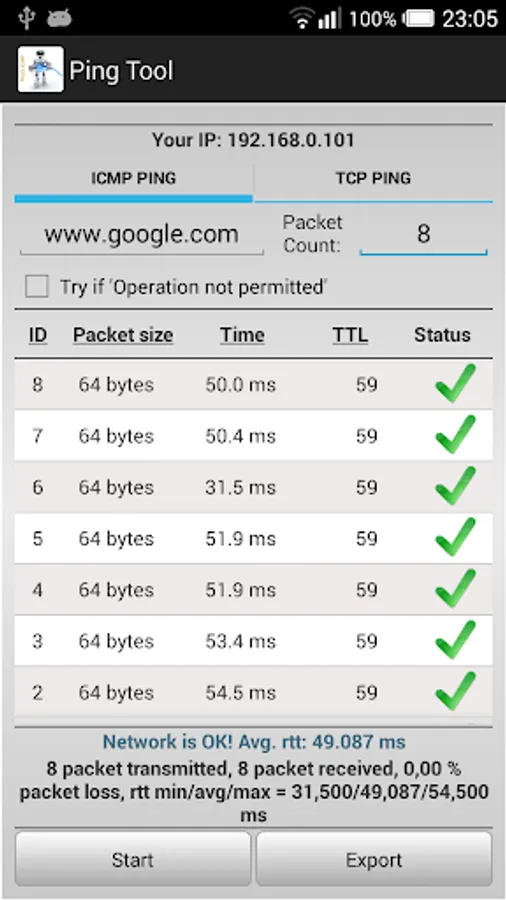 - ICMP and TCP ping support - works on ALL devices (including Samsung)