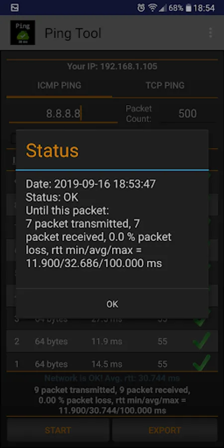 - Unlimited ping count - run tests as long as you need