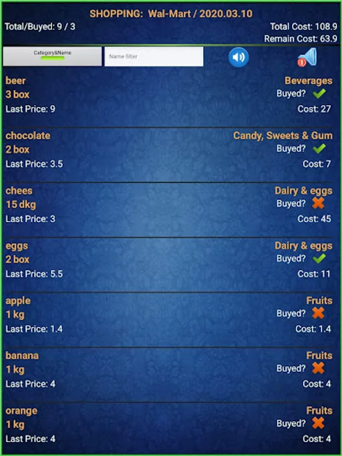 Plan your shopping anywhere, use / listen the app in the supermarket and finish the shopping quickly.