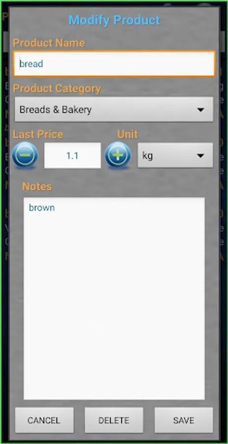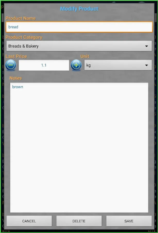1. Built-in database of common grocery items (more then 110 products)