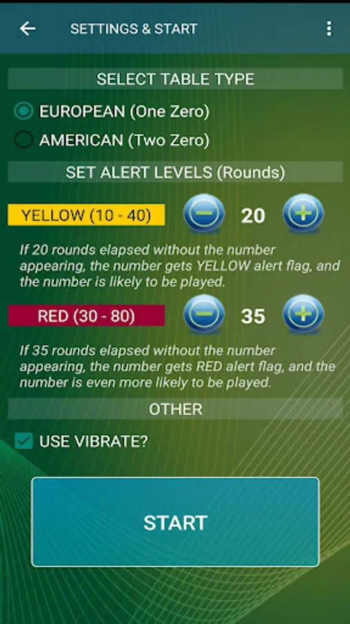 🔸 In the main screen you can modify the alert levels according to your gaming style and your willingness to take risk.