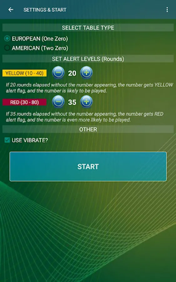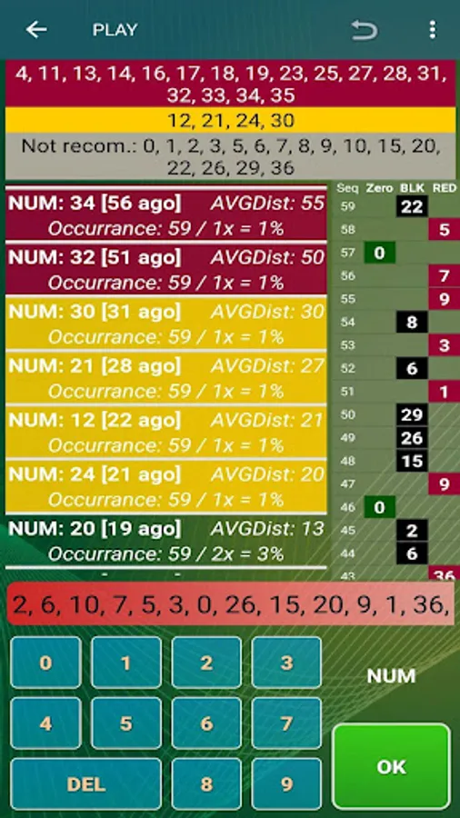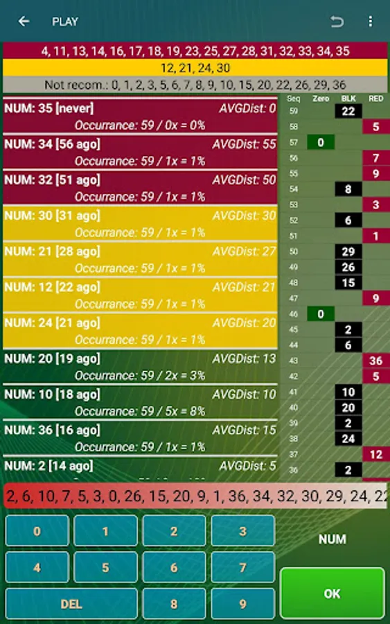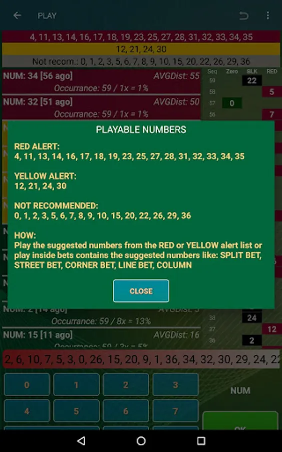 🔸 Enter the outcome numbers for at least 20 rounds until the first YELLOW alert will be displayed.
