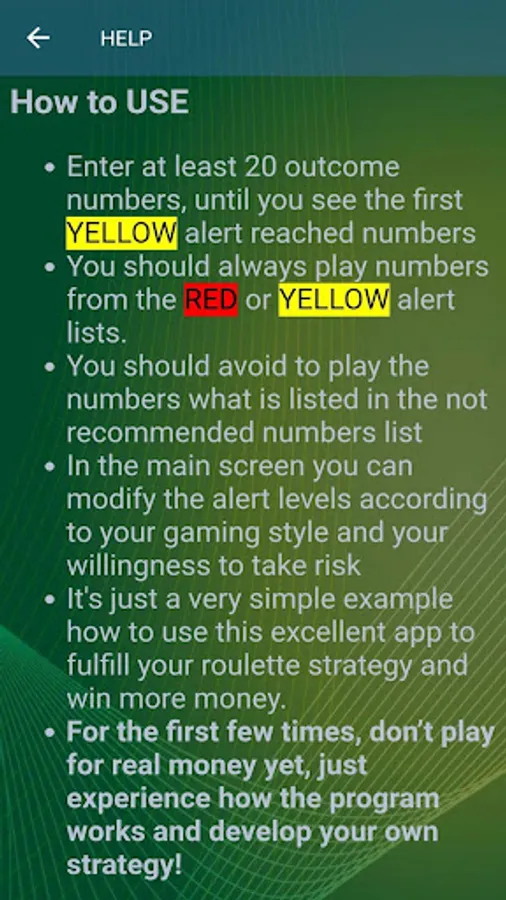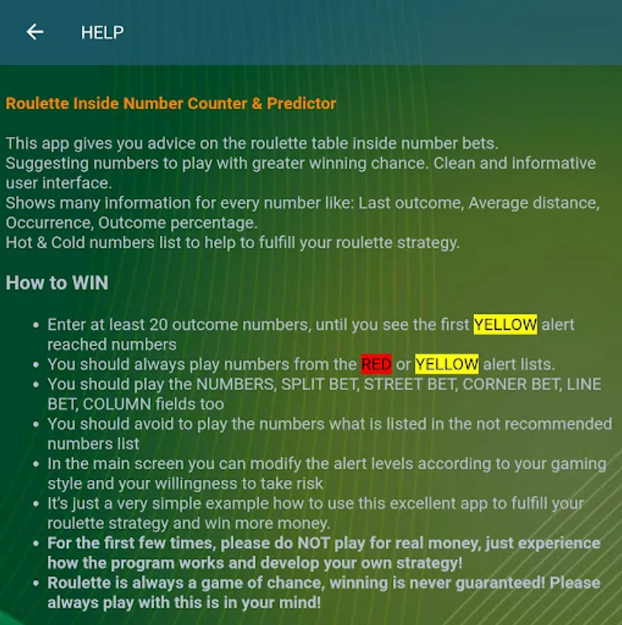 🔸 This is just a very simplified example of how to use this app. The program makes it easier to implement several roulette winning strategy.