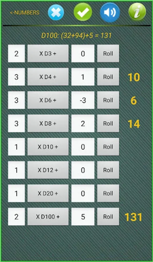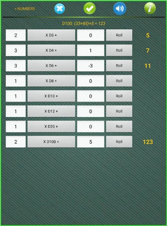 ★ Different dice quantity supported: D3, D4, D6, D8, D10, D12, D20, D100 rolls.